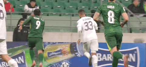 第36分鐘,曹永競(jìng)下底傳中,法比奧中路搶點(diǎn)被后衛(wèi)破壞